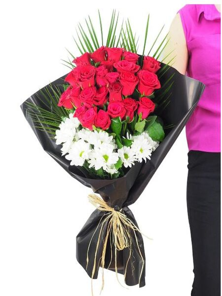 Kırmızı Güller ve Pembe Papatyalı Buket