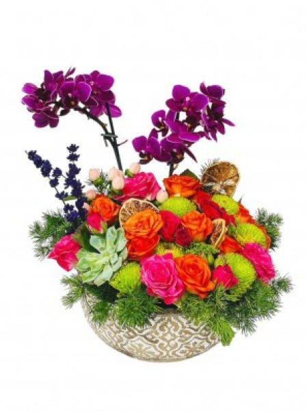 Beton Saksıda Orkide ve Güller