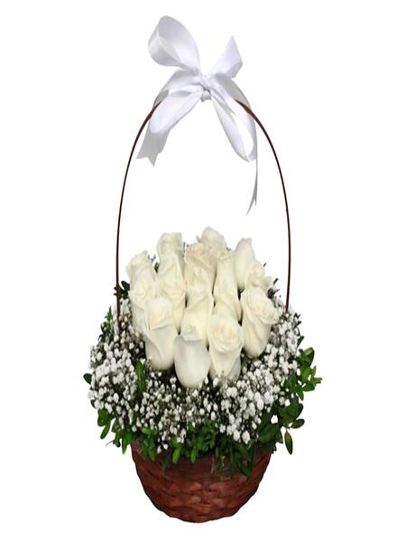 Beyaz Güllü Çiçek Sepeti
