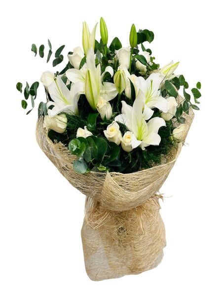 Beyaz Lilyum ve Beyaz Gül Buketi