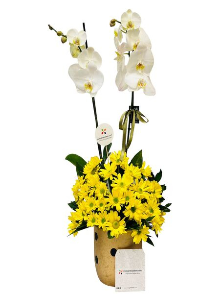 Beyaz Orkidede Sarı Papatyalar