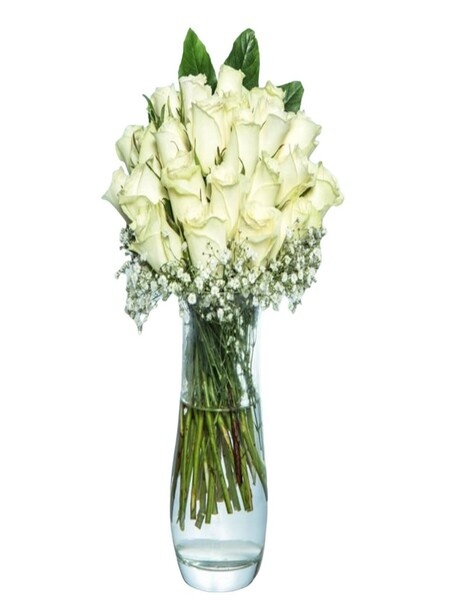 Cam Vazoda 20 Beyaz Gül