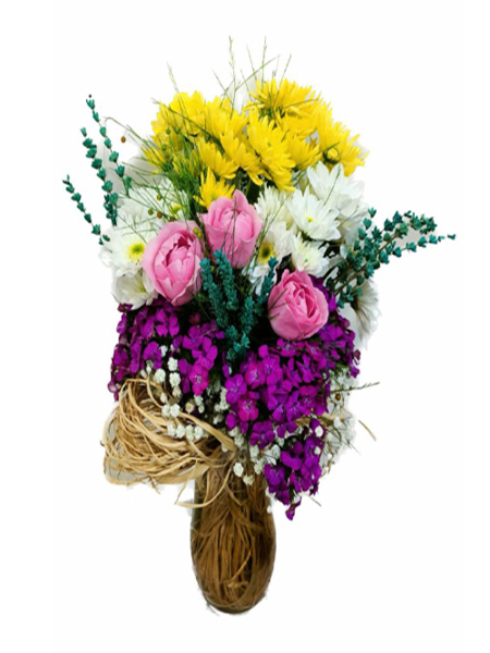 Sarı Papatya ve Pembe Karanfil Buketi