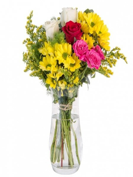 Cam Vazoda Sarı Papatya ve Güller