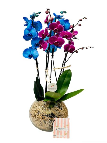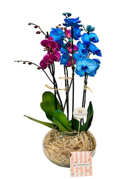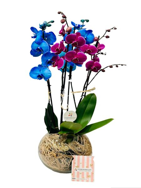 Fanusta Mavi ve Mor Orkideler