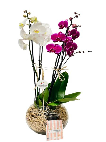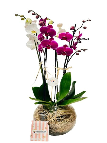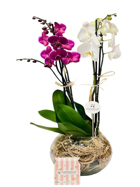 Fanusta Pembe Beyaz Orkideler