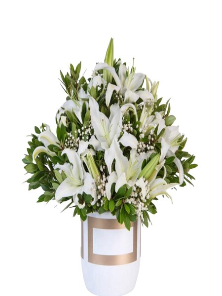Seramikte Lilyum ve 7 Kırmızı Gül
