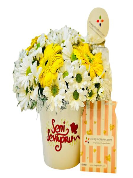 Seni Seviyorum Mesajlı Gül ve Papatyalar