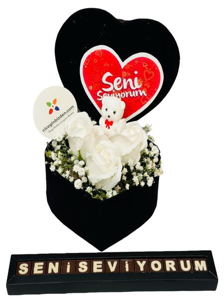 Kalp Kutuda Beyaz Güller ve Çikolata