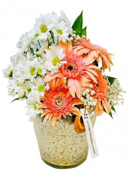 Konikte Beyaz Papatyalar ve Pembe Gerberalar