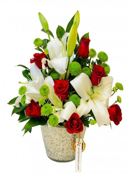 Fanusta Lilyum ve Kırmızı Güller