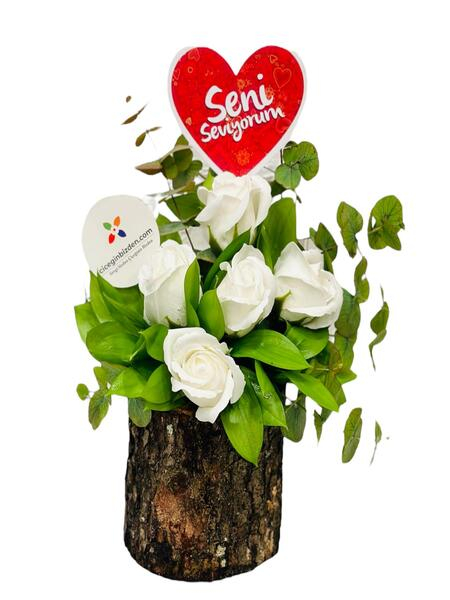 Kütükte 5 Beyaz Gül
