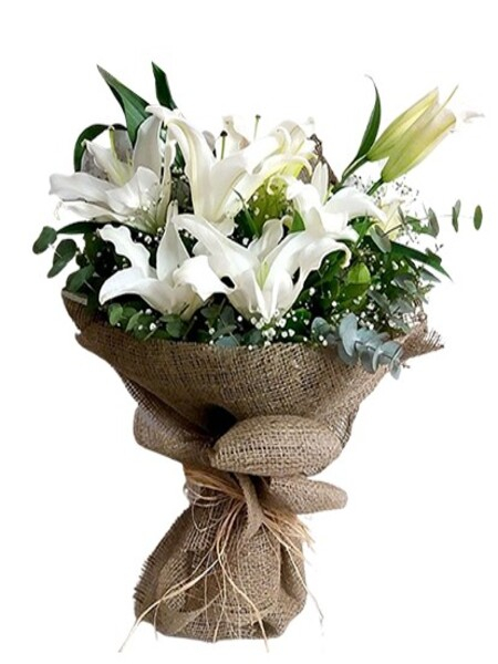 Seramikte Lilyum ve 7 Kırmızı Gül