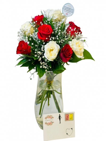 9 White and Red Rose