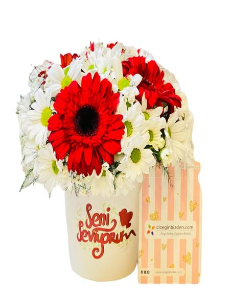 Seni Seviyorum Mesajlı Gül ve Papatyalar