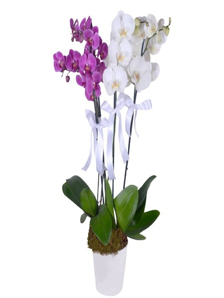 Seramikte Beyaz Mor Orkideler