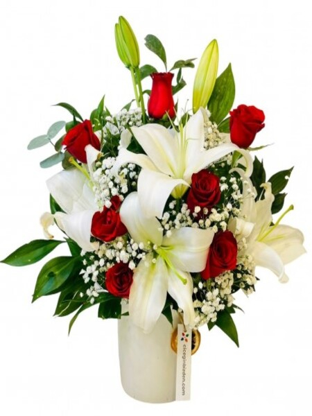 Seramikte Lilyum ve 7 Kırmızı Gül