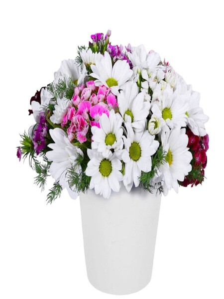 Konikte Beyaz Papatyalar ve Pembe Gerberalar
