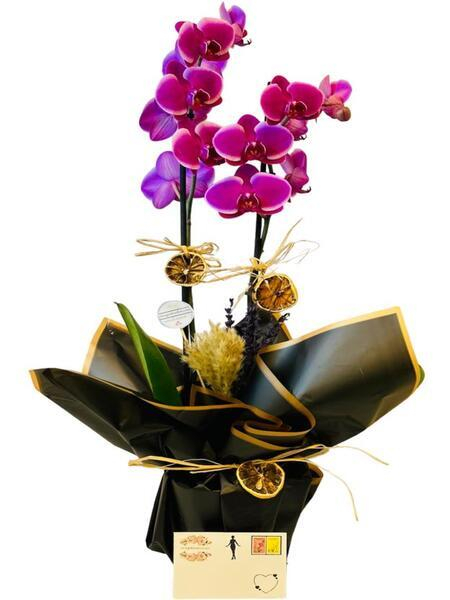 Şık Tasarım Çiftli Mor Orkide