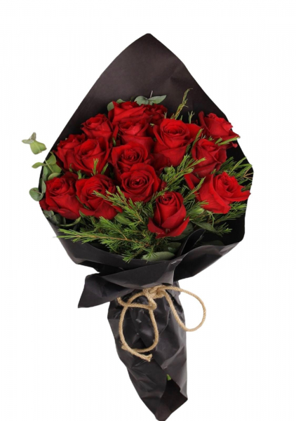 Siyah Kağıtta 15 Vip Kırmızı Gül Buket