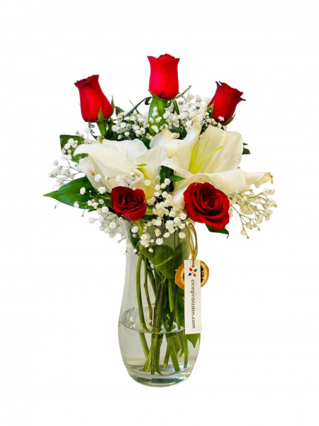 Vazoda 2 Lilyum ve 5 Gül