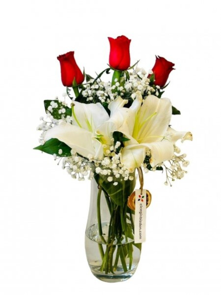 Vazoda 2 Lilyum ve 5 Gül