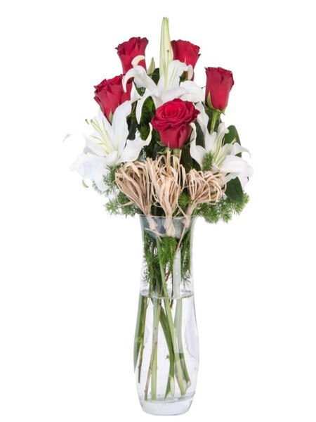 Kıvrışık Kağıtta 5 Kırmızı Gül Buket